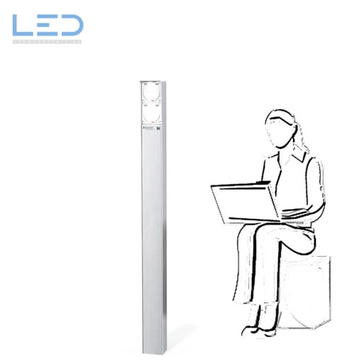 Die Energiesäule ist in verschiedenen Bauhöhen erhältlich. Die Bezeichnung ESOCKET mit der Endung 350 / 600 / 900 / 1200 / 1500 zeigt auch gleich die Bauhöhe in Millimeter der Energiesäule. Die Abkürzung F steht für Feller NEVO Apparate und die Endung H für Hager Robusto.